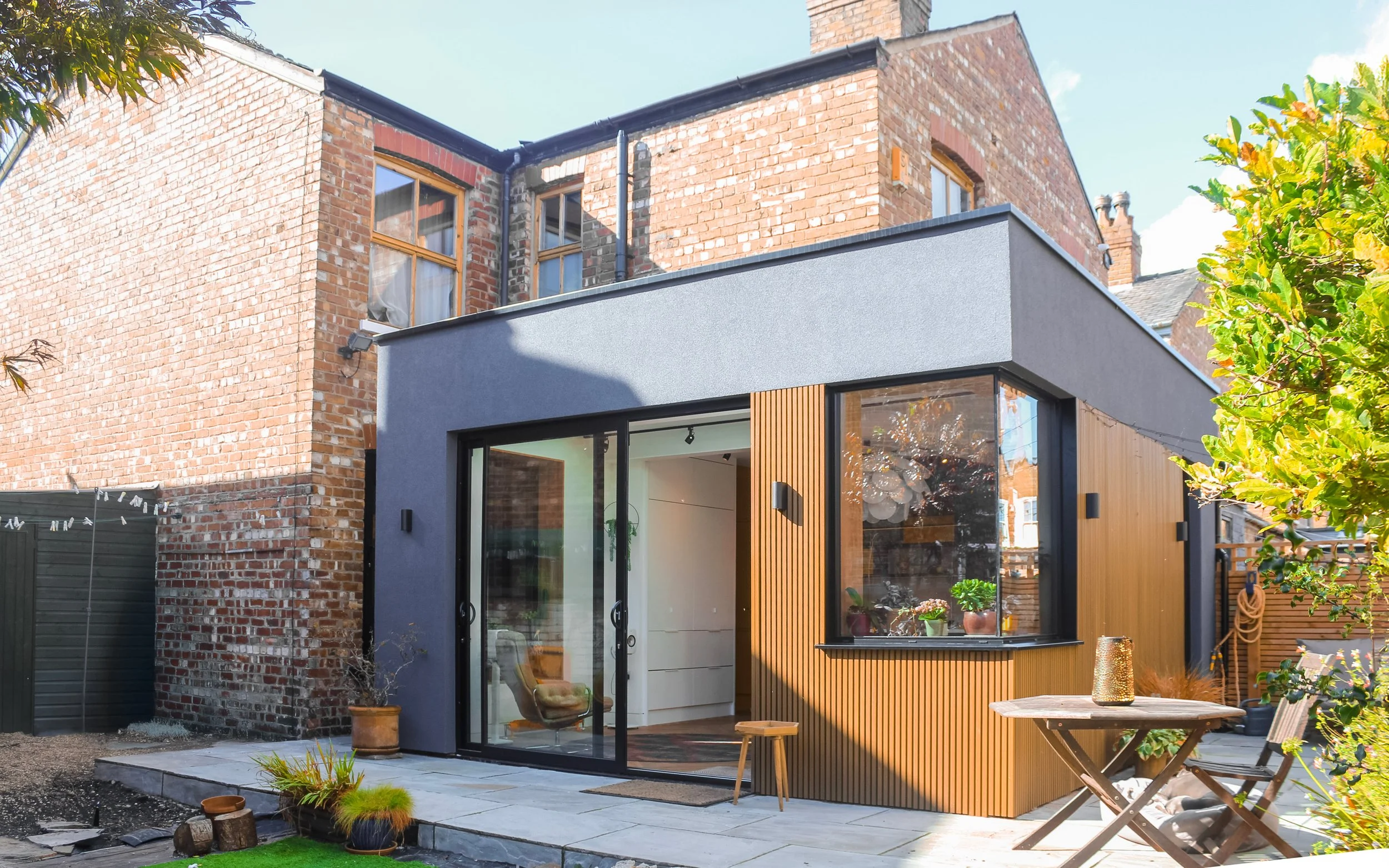 Rear kitchen extension and garden connection in South Manchester.